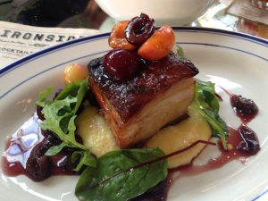 Pork butt + grilled peaches + bacon emulsion